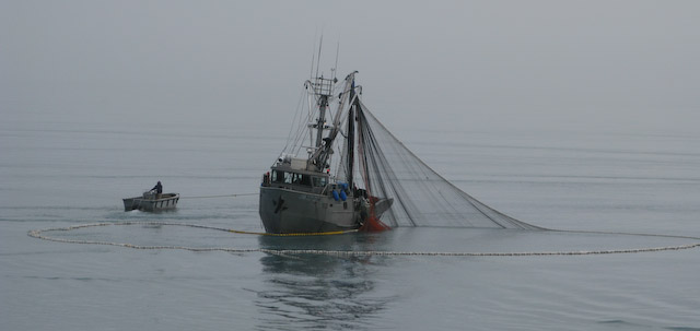 Monday morning I woke up to front row seats watching a purse seiner and fishing boats put out their nets and then load the catch on to the purse seiner. The fishing boat lifts the net up and then the purse seiner basically vacuums all of the catch into a big “purse” (holding tank). There were several fishing boats loading catch on to the pursiner.